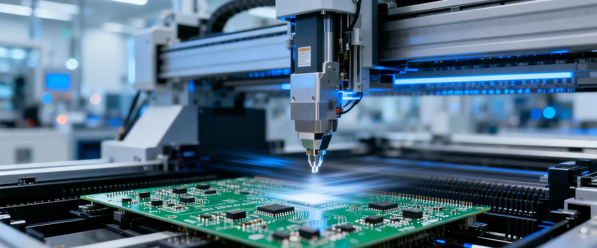 Bir PCB montaj makinesi, genellikle katmanlı metal veya seramik levhalardan baskılı devre kartlarını otomatik olarak üreten bir cihazdır. Süreç, hammaddenin otomatik bir konveyör bandına yerleştirilmesiyle başlar ve kimyasal buhar biriktirme (CVD) işlemleriyle kart üzerine bakır katmanlarının kaplandığı çeşitli istasyonlardan geçer.